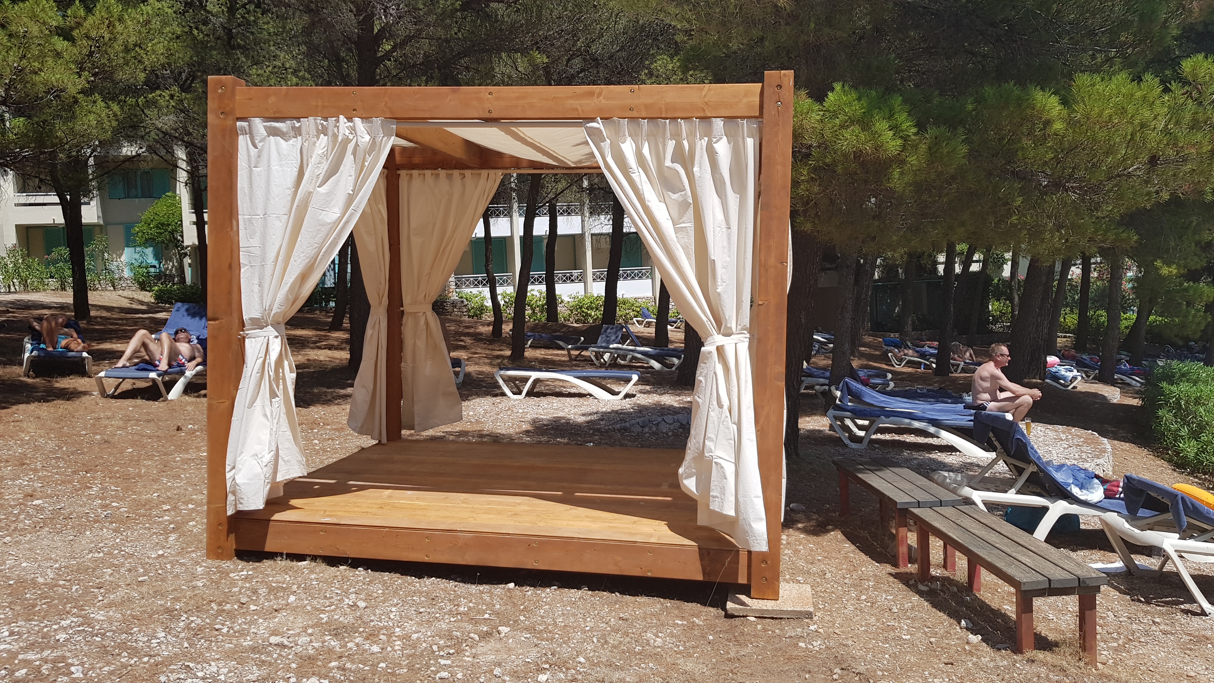 Opustite se sa stilom i luksuzom uz luksuzne baldahin. Naši najsuvremeniji dizajni učinit će da se vaši gosti osjećaju kao da su na privatnom otoku dok se opuštaju na suncu. Uz izdržljive materijale i elegantan dizajn, možete biti sigurni da će vaši gosti imati ugodno iskustvo bez stresa. Istaknite svoj vanjski prostor i dodajte dašak sofisticiranosti s našim baldahinima.